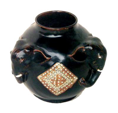 8″ Ceramic vase with 3 Elephant Heads