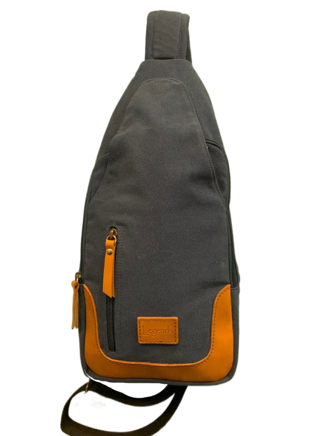 Stone Washed Canvas Cross Body Sling Bag with Leather Trim