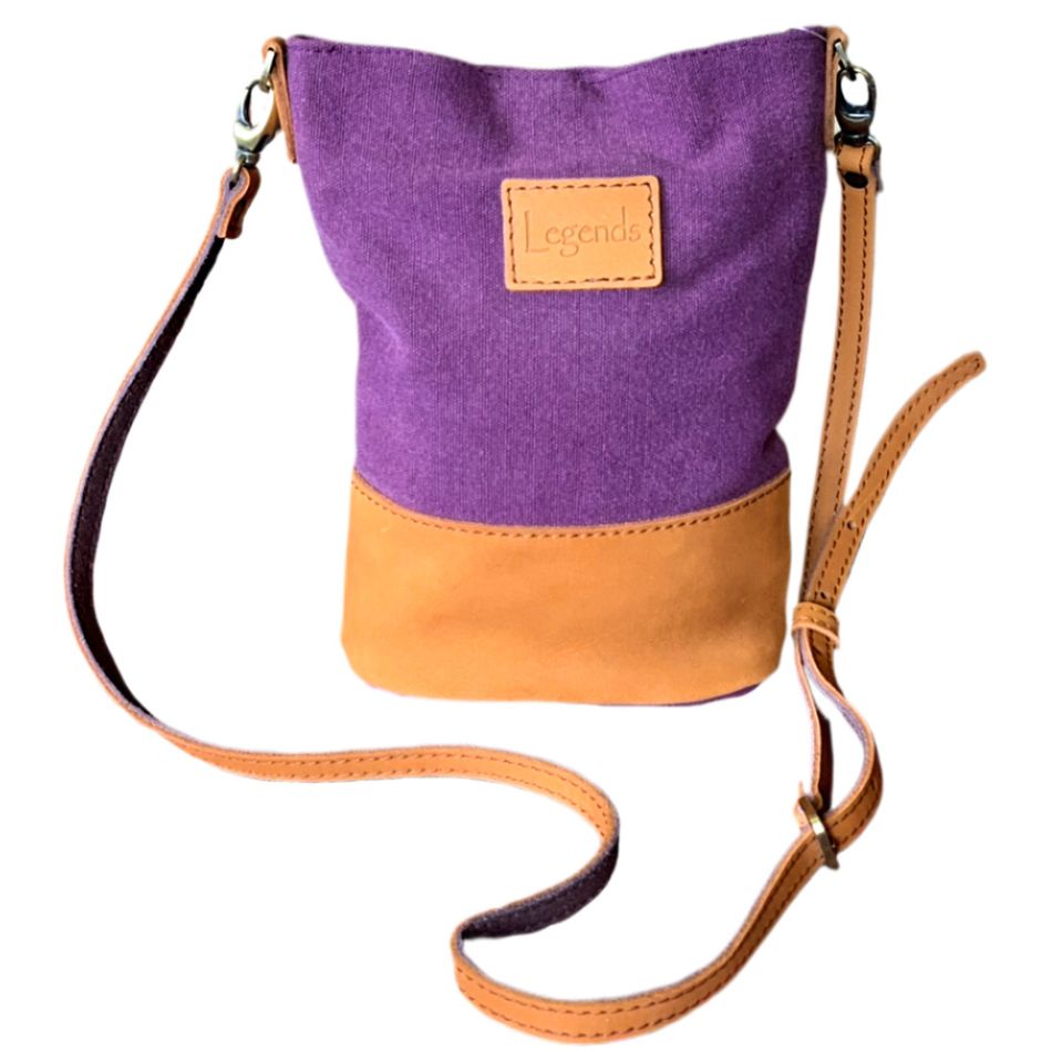 Stone Washed Canvas Cross Body Sling Bag with Leather Trim