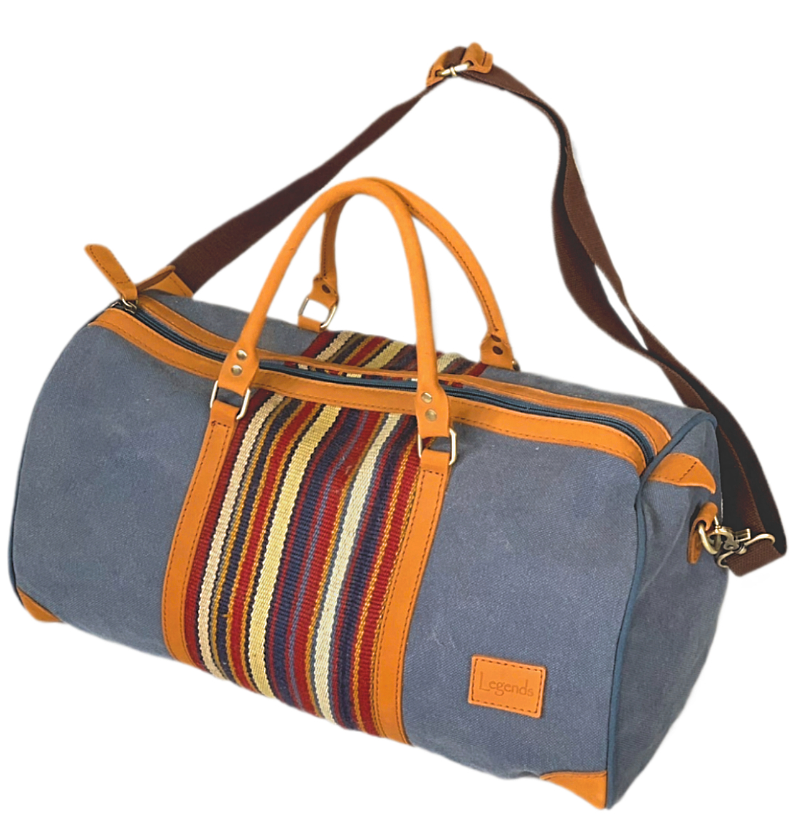 Stone Washed Canvas travel Bag with Kilim and Leather Trim