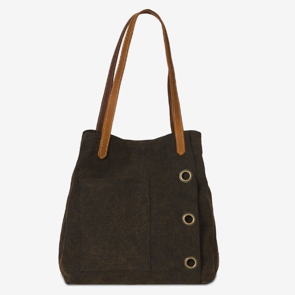 Stone Washed Canvas Tote Bag with Leather Straps and Brass Rings