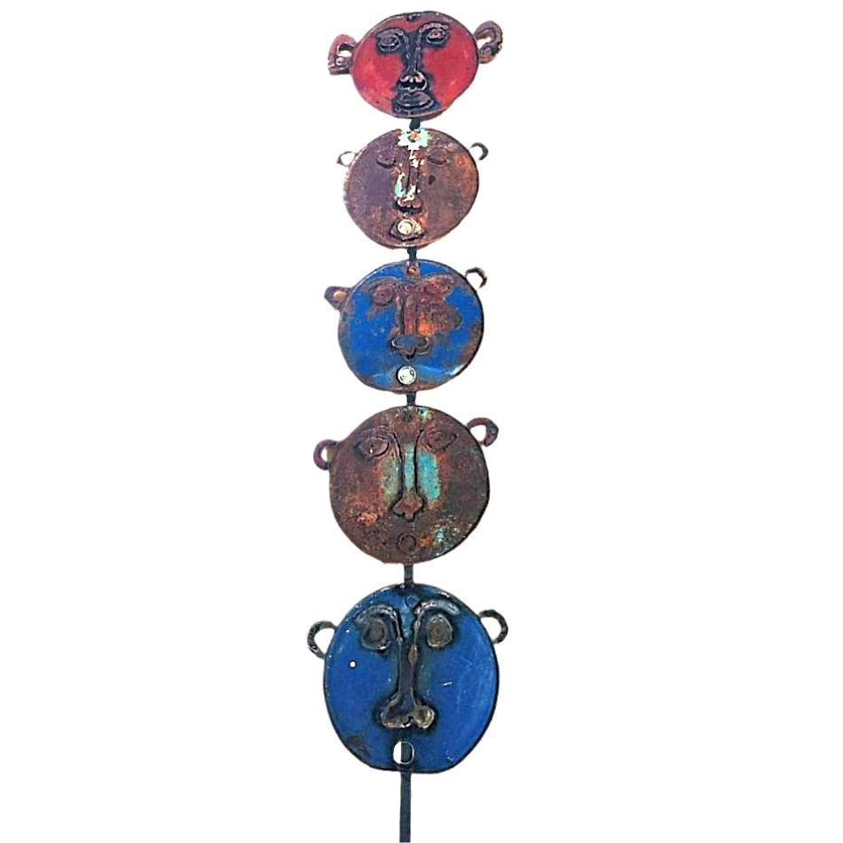 138″ Oil Drum Tops as Masks Sculpture