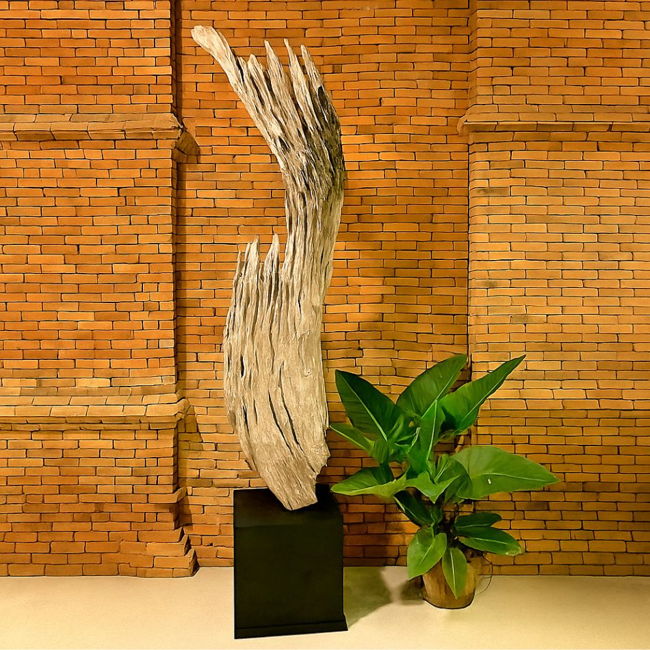 102″ Reclaimed Bottom of Teak Canoe on Stand