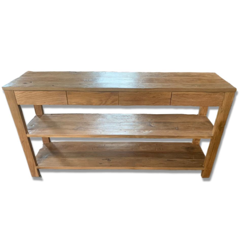 64″x16″x34″ Teak Console with Two Shelves and Four Drawers